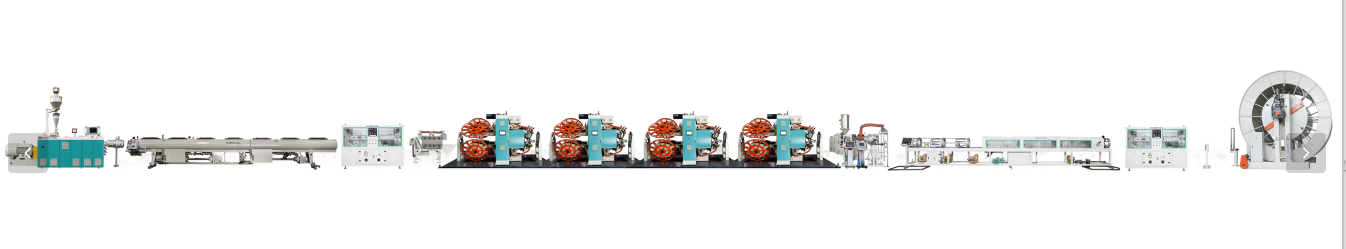 Linka na vytláčanie vystužených termoplastických rúr (RTP).pozostáva z troch častí. Prvou časťou je vnútorná jednotka zariadenia na vytláčanie plastových rúrok; Druhá časť je medzivrstva nekovovým drôtom vystužená jednotka navíjacieho zariadenia; Tretia časť je vonkajšiaJednotka zariadenia na vytláčanie HDPE povlaku. Má výhody vysokej účinnosti, vysokej rýchlosti, vysokej automatizácie a úspory energie. Je to ideálne zariadenie na výrobu kompozitných rúr RTP.